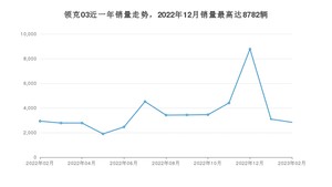 2023年2月,领克03销量为2838辆,同比下降3.21%,环比下降8.19%。2022年02月-2023年02月份,领克03销量为46787辆,同比下降37.54%。