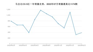 2023年2月,马自达CX-5销量为389辆,同比下降50.63%,环比增长22.71%。2022年02月-2023年02月份,马自达CX-5销量为9562辆,同比下降63.57%。
