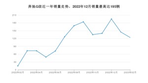 2023年2月,奔驰G级销量为124辆,同比增长726.67%,环比下降14.48%。2022年02月-2023年02月份,奔驰G级销量为1501辆,同比下降64.69%。