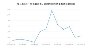 2023年2月,宝马2系销量为248辆,同比增长306.56%,环比增长24.62%。2022年02月-2023年02月份,宝马2系销量为4634辆,同比下降51.55%。
