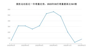 2023年2月,揽胜运动版销量为81辆,同比增长28.57%,2022年02月-2023年02月份,揽胜运动版销量为3139辆,同比下降62.4%。
