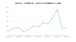 2023年2月,途昂X销量为328辆,同比增长77.3%,环比增长14.29%。2022年02月-2023年02月份,途昂X销量为5518辆,同比下降9.63%。