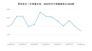 2023年2月,冒险家销量为1422辆,同比下降32.99%,环比下降27.19%。2022年02月-2023年02月份,冒险家销量为33128辆,同比下降35.73%。