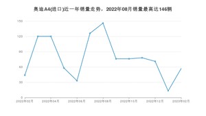 2023年2月,奥迪A4(进口)销量为57辆,同比增长29.55%,环比增长338.46%。2022年02月-2023年02月份,奥迪A4(进口)销量为1018辆,同比下降78.1%。