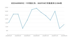 2023年2月,凌放HARRIER销量为1309辆,同比下降15.93%,环比增长68.69%。2022年02月-2023年02月份,凌放HARRIER销量为28379辆,同比增长137.78%。