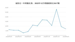 2023年2月,途胜销量为1385辆,同比增长12.79%,环比下降26.33%。2022年02月-2023年02月份,途胜销量为26728辆,同比下降19.02%。