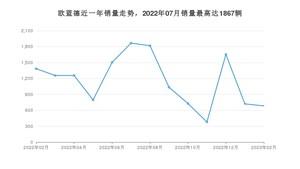 2023年2月,欧蓝德销量为683辆,同比下降50.65%,环比下降5.27%。2022年02月-2023年02月份,欧蓝德销量为15079辆,同比下降72.53%。