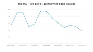 2023年2月,航海家销量为563辆,同比下降31.26%,环比下降25.03%。2022年02月-2023年02月份,航海家销量为12833辆,同比下降86.43%。