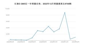 2023年2月,红旗E-QM5销量为1016辆,同比增长272.16%,环比增长151.49%。2022年02月-2023年02月份,红旗E-QM5销量为28210辆,同比增长312.01%。