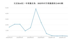 2023年2月,比亚迪e2销量为19辆,同比下降98.81%,2022年02月-2023年02月份,比亚迪e2销量为16122辆,同比下降54.79%。