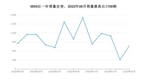 2023年2月,MINI销量为771辆,同比下降9.72%,环比增长153.62%。2022年02月-2023年02月份,MINI销量为13126辆,同比下降37.43%。