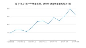 2023年2月,宝马6系GT销量为639辆,同比增长238.1%,环比下降19.52%。2022年02月-2023年02月份,宝马6系GT销量为5786辆,同比下降48.71%。
