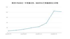 2023年2月,捷豹F-PACE销量为123辆,环比下降3.15%。2022年02月-2023年02月份,捷豹F-PACE销量为417辆,同比下降87.82%。