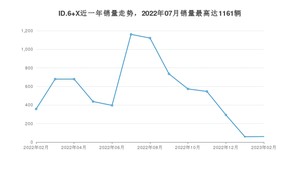 2023年2月,ID.6 X销量为60辆,同比下降83.19%,环比增长3.45%。2022年02月-2023年02月份,ID.6 X销量为7095辆,同比下降9.54%。