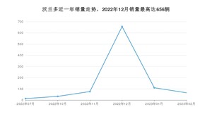 2023年2月,沃兰多销量为65辆,环比下降40.91%。2022年02月-2023年02月份,沃兰多销量为953辆,同比下降79.98%。