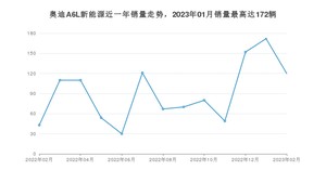 2023年2月,奥迪A6L新能源销量为120辆,同比增长179.07%,环比下降30.23%。2022年02月-2023年02月份,奥迪A6L新能源销量为1178辆,同比下降74.35%。