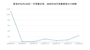 2023年2月,捷途X70 PLUS销量为242辆,同比下降78.18%,环比增长214.29%。2022年02月-2023年02月份,捷途X70 PLUS销量为1624辆,同比下降97.56%。
