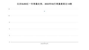2023年2月,北京BJ90销量为14辆,2022年02月-2023年02月份,北京BJ90销量为14辆,同比下降95.88%。