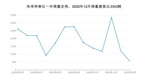 2023年2月,哈弗神兽销量为530辆,同比下降79.69%,环比下降55.98%。2022年02月-2023年02月份,哈弗神兽销量为24496辆,同比增长52.34%。
