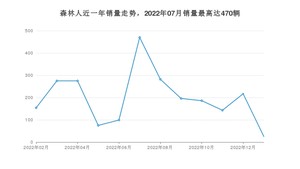 2023年2月,森林人销量为25辆,同比下降83.77%,2022年02月-2023年02月份,森林人销量为2397辆,同比下降77.81%。