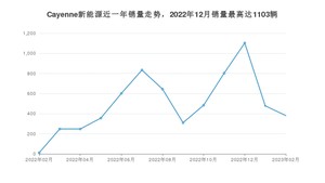 2023年2月,Cayenne新能源销量为381辆,同比增长3%,环比下降20.29%。2022年02月-2023年02月份,Cayenne新能源销量为6503辆,同比增长750.07%。