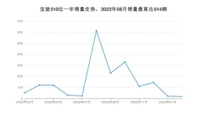 2023年2月,宝骏510销量为17辆,同比下降67.31%,环比下降15%。2022年02月-2023年02月份,宝骏510销量为1807辆,同比下降93.67%。