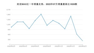 2023年2月,奕炫MAX销量为219辆,同比下降79.12%,环比下降64.85%。2022年02月-2023年02月份,奕炫MAX销量为15388辆,同比增长274.4%。