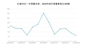 2023年2月,红旗H7销量为59辆,同比下降64.46%,环比下降33.71%。2022年02月-2023年02月份,红旗H7销量为1846辆,同比下降73.66%。