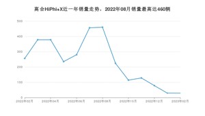 2023年2月,高合HiPhi X销量为29辆,同比下降88.67%,环比持平。2022年02月-2023年02月份,高合HiPhi X销量为3045辆,同比下降39.62%。