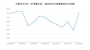 2023年2月,五菱宏光V销量为7255辆,同比增长3.69%,环比增长151.39%。2022年02月-2023年02月份,五菱宏光V销量为70855辆,同比增长0.61%。