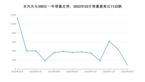 2023年2月,东风风光580销量为80辆,同比下降92.87%,环比下降81.48%。2022年02月-2023年02月份,东风风光580销量为5269辆,同比下降79.19%。