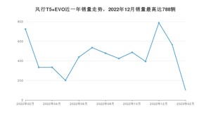 2023年2月,风行T5 EVO销量为100辆,同比下降86.19%,环比下降82.27%。2022年02月-2023年02月份,风行T5 EVO销量为5801辆,同比下降79.42%。