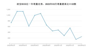 2023年2月,凌宝BOX销量为253辆,同比下降65.72%,环比增长68.67%。2022年02月-2023年02月份,凌宝BOX销量为8491辆,同比下降8.55%。