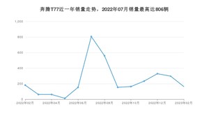 2023年2月,奔腾T77销量为163辆,同比下降9.94%,环比下降45.12%。2022年02月-2023年02月份,奔腾T77销量为3170辆,同比下降81.92%。