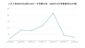 2023年2月,上汽大通MAXUS MIFA 9销量为23辆,环比下降43.9%。2022年02月-2023年02月份,上汽大通MAXUS MIFA 9销量为567辆,