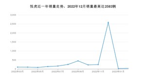 2023年2月,悦虎销量为32辆,环比增长39.13%。2022年02月-2023年02月份,悦虎销量为4389辆,同比增长533.33%。