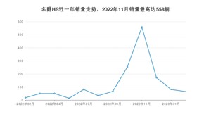 2023年2月,名爵HS销量为65辆,同比增长261.11%,环比下降19.75%。2022年02月-2023年02月份,名爵HS销量为1442辆,同比下降38.56%。