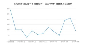 2023年2月,东风风光S560销量为91辆,同比下降68.4%,环比下降57.08%。2022年02月-2023年02月份,东风风光S560销量为1478辆,同比下降91.54%。