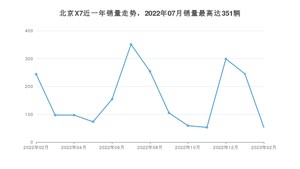 2023年2月,北京X7销量为53辆,同比下降78.28%,环比下降78.37%。2022年02月-2023年02月份,北京X7销量为2084辆,同比下降90.14%。