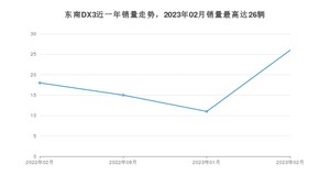 2023年2月,东南DX3销量为26辆,同比增长44.44%,环比增长136.36%。2022年02月-2023年02月份,东南DX3销量为70辆,同比下降95%。