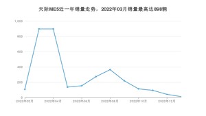2023年2月,天际ME5销量为12辆,同比下降88.89%,2022年02月-2023年02月份,天际ME5销量为3314辆,同比增长209.14%。