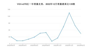 2023年2月,VGV U70销量为44辆,同比增长46.67%,环比下降44.3%。2022年02月-2023年02月份,VGV U70销量为568辆,同比下降90.54%。