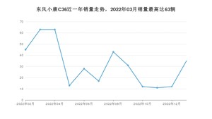2023年2月,东风小康C36销量为35辆,同比下降22.22%,2022年02月-2023年02月份,东风小康C36销量为373辆,同比增长728.89%。