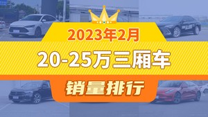 2023年2月的乘用车销量数据已经出炉,据众车网汽车行业数据监测显示,2月国内乘用车市场销量达到90.3万辆,同比增长0.58%,环比增长1.64%。每月各个细分市场的销量排行榜,也成为了大家所关注的话题,今天众车网为大家带来了,2023年2月20-25万三厢车的销量排行榜单,有哪些车型能跻身销量榜呢?下面我们直接看数据。