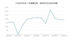 2023年3月,六安市汽车总销量为1914辆,同比增长20.83%,环比持平。2022年03月-2023年03月份,六安市总销量为23330辆,同比下降34.87%。在最近1年中,六安市销量在2022年12月达到最高,销量为3170辆。