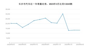 2023年3月,长沙市汽车总销量为13245辆,同比下降34.62%,环比下降0.42%。2022年03月-2023年03月份,长沙市总销量为260589辆,同比下降14.31%。在最近1年中,长沙市销量在2022年12月达到最高,销量为30244辆。