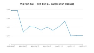 2023年3月,芜湖市汽车总销量为2058辆,同比下降73.63%,环比持平。2022年03月-2023年03月份,芜湖市总销量为52729辆,同比下降18.79%。在最近1年中,芜湖市销量在2022年03月达到最高,销量为7804辆。