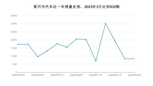 2023年3月,黄冈市汽车总销量为832辆,同比下降51.85%,环比持平。2022年03月-2023年03月份,黄冈市总销量为20426辆,同比下降35.42%。在最近1年中,黄冈市销量在2022年12月达到最高,销量为3011辆。