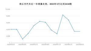 2023年3月,商丘市汽车总销量为3434辆,同比下降15.15%,环比持平。2022年03月-2023年03月份,商丘市总销量为58294辆,同比下降26.47%。在最近1年中,商丘市销量在2022年12月达到最高,销量为8312辆。