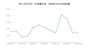 2023年3月,周口市汽车总销量为2802辆,同比下降14.81%,环比持平。2022年03月-2023年03月份,周口市总销量为51180辆,同比下降35.39%。在最近1年中,周口市销量在2022年12月达到最高,销量为8297辆。